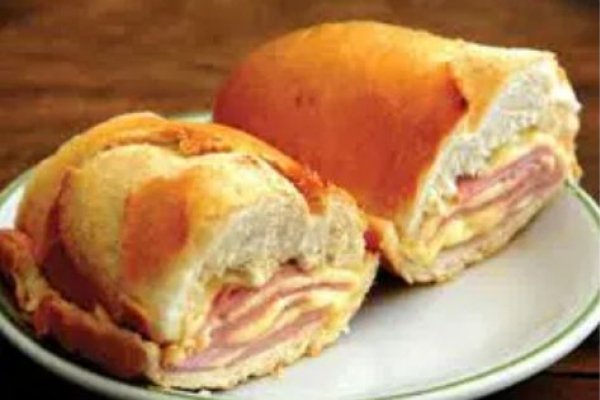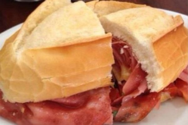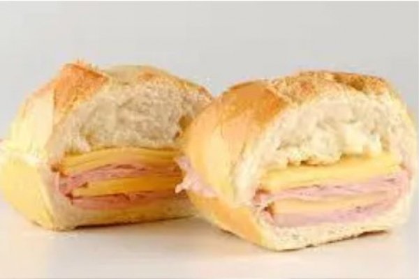 Pão francês, mussarela e presunto.