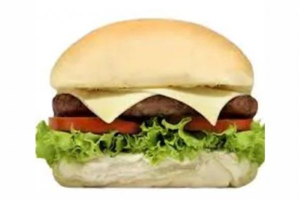 Hambúrguer, queijo, alface, tomate e maionese.